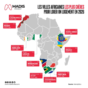 En 2026, louer un logement dans plusieurs grandes capitales africaines devient de plus en plus coûteux. Des villes comme Lagos et Abidjan figurent désormais en tête des classements en matière de prix locatifs, avec des indices respectifs de 23,4 et 23,3. Elles sont suivies par Le Cap (22,2) et Addis-Abeba (20,9). Cette tendance reflète les profondes transformations urbaines que connaît actuellement le continent.